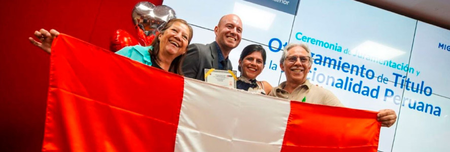 La nacionalidad peruana por naturalización es otorgada por el Poder Ejecutivo a través del presidente de la República, previa evaluación y opinión favorable de la Superintendencia Nacional de Migraciones.